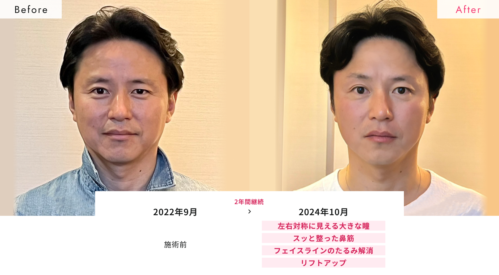 僕は老若男女問わず、KTYのフェイストレーニングはやったほうが良いとおもっているんです。僕がカツヨ先生に一番最初に施術を行ってもらったのがもう7年前です。時間だけは随分経過しましたが、自分自身は小まめにサロンに月1通っていただけですが、顔のエラハリが目立つことなくフェイスラインのシャープをキープしています。多くの方に体験してもらいたい理由は、このフェイストレーニングが加わったことで、自分で表情管理ができ顔印象の好感度を意識できるようになるからです。また体重が増えているのにも関わらず顔のシャープさを保てています。僕は教わった顔のトレーニングをお風呂に入っている際に意識的に続けています。